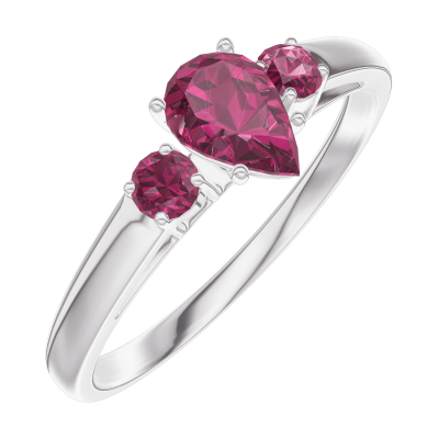 « L'ATELIER » Nº161044Pierścionek Białe złoto 375 - Rubin Gruszka 0.3 karat - Kamienie boczne Rubin