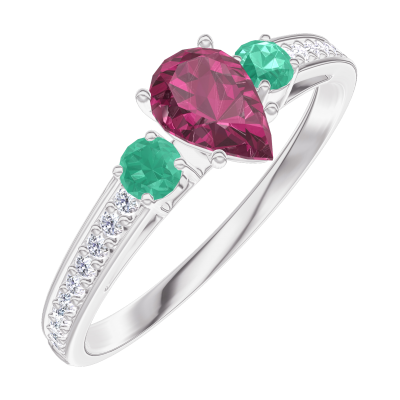 « L'ATELIER » Nº161088Pierścionek Białe złoto 375 - Rubin Gruszka 0.3 karat - Kamienie boczne Szmaragd - Oprawa Diament