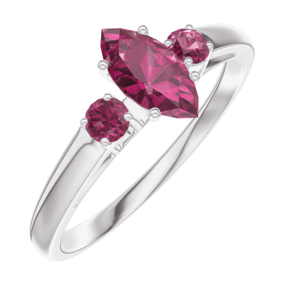 « L'ATELIER » Nº161144Pierścionek Białe złoto 375 - Rubin Markiza 0.3 karat - Kamienie boczne Rubin