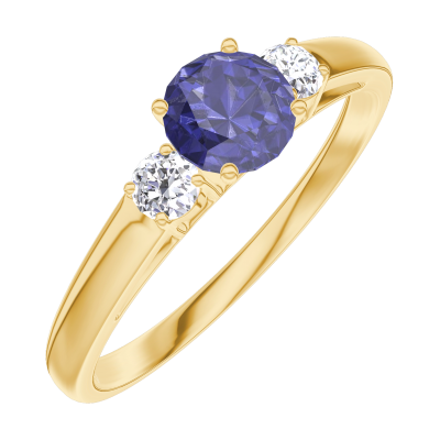 « L'ATELIER » Nº161222Pierścionek Żółte złoto 375 - Niebieski szafir okrągły 0.3 karat - Kamienie boczne Diament 4.5