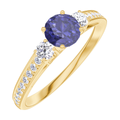 « L'ATELIER » NR 161226Pierścionek Żółte złoto 375 - Niebieski szafir okrągły 0.3 karat - Kamienie boczne Diament - Oprawa Diament 4.5