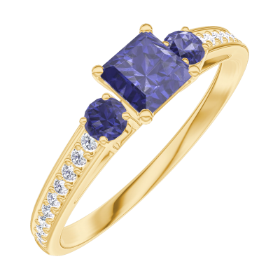 « L'ATELIER » NR 161365Pierścionek Żółte złoto 750 - Niebieski szafir „Księżniczka” 0.3 karat - Kamienie boczne Niebieski szafir - Oprawa Diament