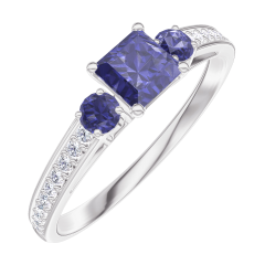 « L'ATELIER » NR 161368Pierścionek Białe złoto 375 - Niebieski szafir „Księżniczka” 0.3 karat - Kamienie boczne Niebieski szafir - Oprawa Diament