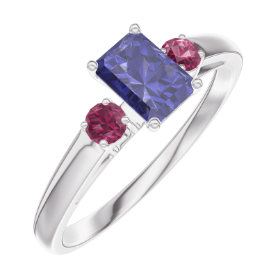 « L'ATELIER » Nº161444Pierścionek Białe złoto 375 - Niebieski szafir Prostokąt 0.3 karat - Kamienie boczne Rubin