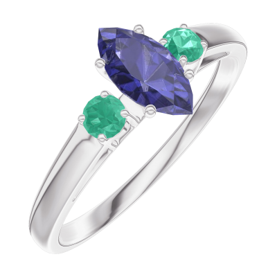 « L'ATELIER » Nº161783Pierścionek Białe złoto 750 - Niebieski szafir Markiza 0.3 karat - Kamienie boczne Szmaragd