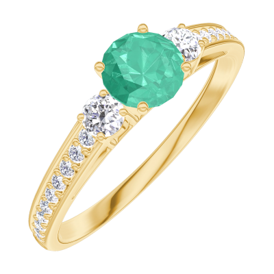 « L'ATELIER » Nº161826Pierścionek Żółte złoto 375 - Szmaragd okrągły 0.3 karat - Kamienie boczne Diament - Oprawa Diament 4.5