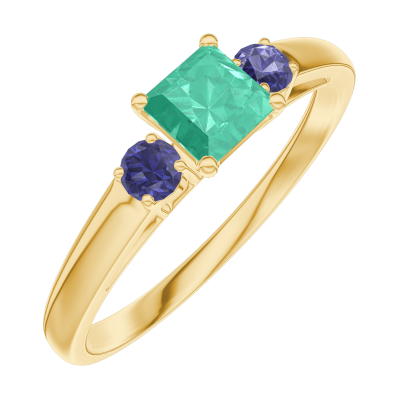 « L'ATELIER » Nº161962Pierścionek Żółte złoto 375 - Szmaragd „Księżniczka” 0.3 karat - Kamienie boczne Niebieski szafir