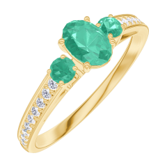 Pierścionek Żółte złoto 750 - Szmaragd Owal 0.3 karat - Kamienie boczne Szmaragd - Oprawa Diament