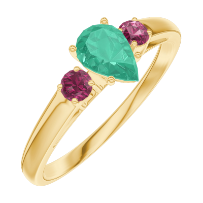 « L'ATELIER » NR 162242Pierścionek Żółte złoto 375 - Szmaragd Gruszka 0.3 karat - Kamienie boczne Rubin