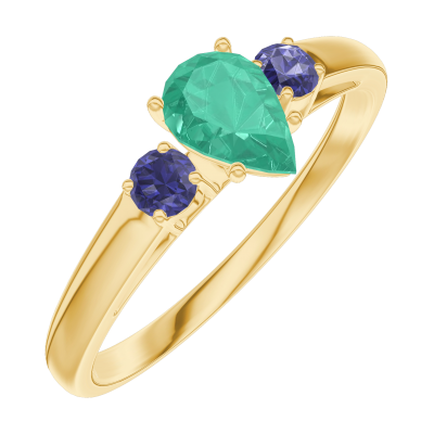 « L'ATELIER » Nº162262Pierścionek Żółte złoto 375 - Szmaragd Gruszka 0.3 karat - Kamienie boczne Niebieski szafir