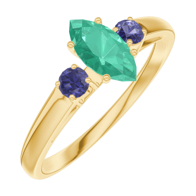 « L'ATELIER » Nº162362Pierścionek Żółte złoto 375 - Szmaragd Markiza 0.3 karat - Kamienie boczne Niebieski szafir
