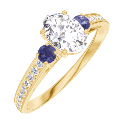 « L'ATELIER » NR 162765Pierścionek Żółte złoto 750 - Diament Owal 0.5 karat - Kamienie boczne Niebieski szafir - Oprawa Diament