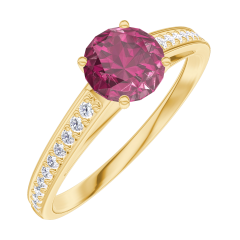 Pierścionek Żółte złoto 750 - Rubin okrągły 0.5 karat - Oprawa Diament