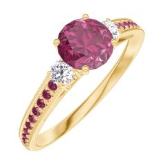 Pierścionek Żółte złoto 750 - Rubin okrągły 0.5 karat - Kamienie boczne Diament - Oprawa Rubin