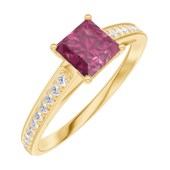 Pierścionek Żółte złoto 750 - Rubin „Księżniczka” 0.5 karat - Oprawa Diament