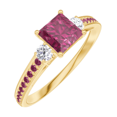 Pierścionek Żółte złoto 750 - Rubin „Księżniczka” 0.5 karat - Kamienie boczne Diament - Oprawa Rubin