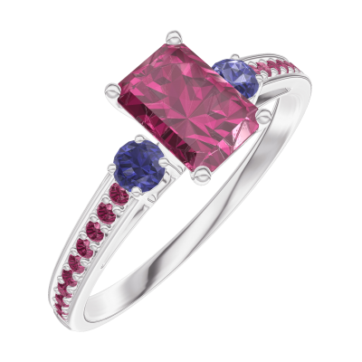 « L'ATELIER » Nº163272Pierścionek Białe złoto 375 - Rubin Prostokąt 0.5 karat - Kamienie boczne Niebieski szafir - Oprawa Rubin