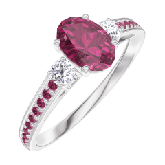 Pierścionek Białe złoto 375 - Rubin Owal 0.5 karat - Kamienie boczne Diament - Oprawa Rubin