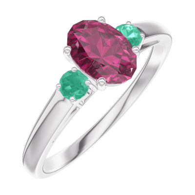« L'ATELIER » Nº163384Pierścionek Białe złoto 375 - Rubin Owal 0.5 karat - Kamienie boczne Szmaragd