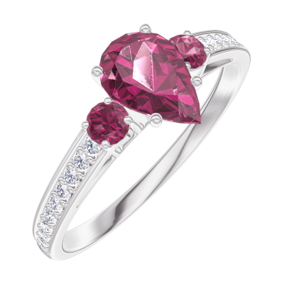 « L'ATELIER » NR 163447Pierścionek Białe złoto 750 - Rubin Gruszka 0.5 karat - Kamienie boczne Rubin - Oprawa Diament