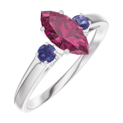 « L'ATELIER » Nº163563Pierścionek Białe złoto 750 - Rubin Markiza 0.5 karat - Kamienie boczne Niebieski szafir