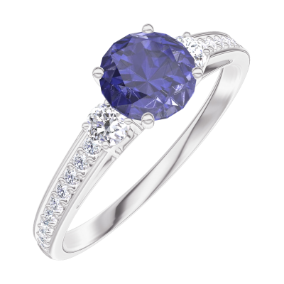 « L'ATELIER » NR 163627Pierścionek Białe złoto 750 - Niebieski szafir okrągły 0.5 karat - Kamienie boczne Diament - Oprawa Diament 4.5