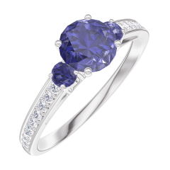 « L'ATELIER » NR 163667Pierścionek Białe złoto 750 - Niebieski szafir okrągły 0.5 karat - Kamienie boczne Niebieski szafir - Oprawa Diament 4.5