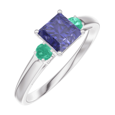 « L'ATELIER » Nº163783Pierścionek Białe złoto 750 - Niebieski szafir „Księżniczka” 0.5 karat - Kamienie boczne Szmaragd