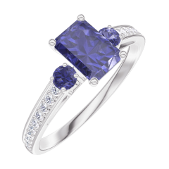 Pierścionek Białe złoto 750 - Niebieski szafir Prostokąt 0.5 karat - Kamienie boczne Niebieski szafir - Oprawa Diament
