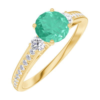 « L'ATELIER » Nº164225Pierścionek Żółte złoto 750 - Szmaragd okrągły 0.5 karat - Kamienie boczne Diament - Oprawa Diament 4.5