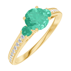 Pierścionek Żółte złoto 750 - Szmaragd okrągły 0.5 karat - Kamienie boczne Szmaragd - Oprawa Diament