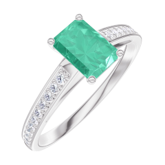 Pierścionek Białe złoto 750 - Szmaragd Prostokąt 0.5 karat - Oprawa Diament