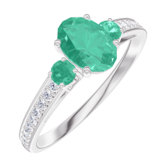 Pierścionek Białe złoto 750 - Szmaragd Owal 0.5 karat - Kamienie boczne Szmaragd - Oprawa Diament