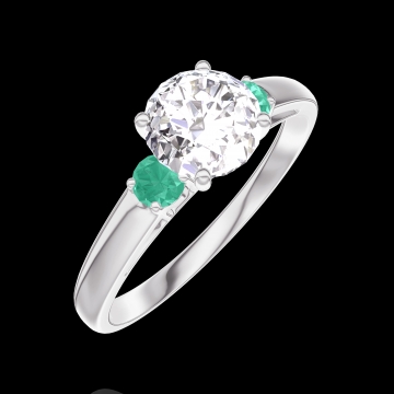 « L'ATELIER » Nº164883Pierścionek Białe złoto 750 - Diament okrągły 0.7 karat - Kamienie boczne Szmaragd 4.9