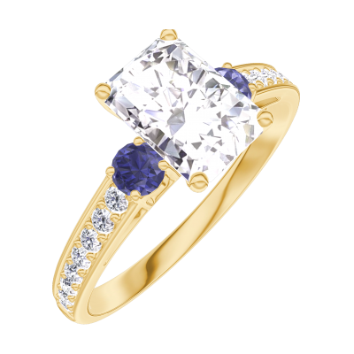 « L'ATELIER » Nº165065Pierścionek Żółte złoto 750 - Diament Prostokąt 0.7 karat - Kamienie boczne Niebieski szafir - Oprawa Diament
