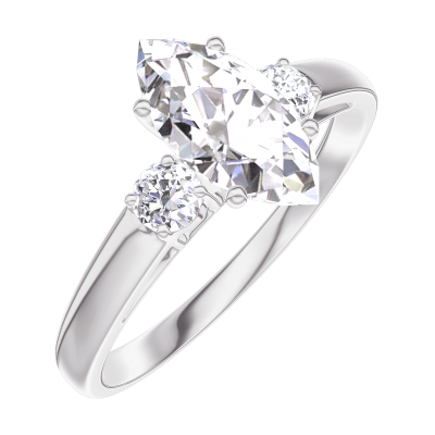 « L'ATELIER » NR 165323Pierścionek Białe złoto 750 - Diament Markiza 0.7 karat - Kamienie boczne Diament