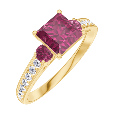 « L'ATELIER » NR 165546Pierścionek Żółte złoto 375 - Rubin „Księżniczka” 0.7 karat - Kamienie boczne Rubin - Oprawa Diament