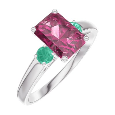 « L'ATELIER » Nº165684Pierścionek Białe złoto 375 - Rubin Prostokąt 0.7 karat - Kamienie boczne Szmaragd