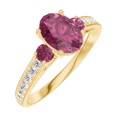 « L'ATELIER » NR 165746Pierścionek Żółte złoto 375 - Rubin Owal 0.7 karat - Kamienie boczne Rubin - Oprawa Diament