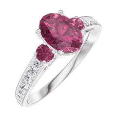 Pierścionek Białe złoto 750 - Rubin Owal 0.7 karat - Kamienie boczne Rubin - Oprawa Diament