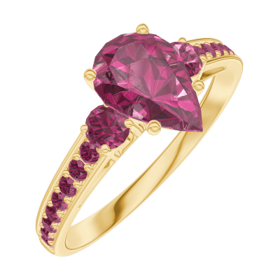 « L'ATELIER » NR 165849Pierścionek Żółte złoto 750 - Rubin Gruszka 0.7 karat - Kamienie boczne Rubin - Oprawa Rubin