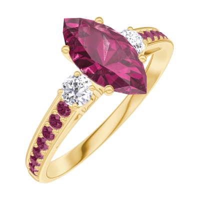 « L'ATELIER » Nº165930Pierścionek Żółte złoto 375 - Rubin Markiza 0.7 karat - Kamienie boczne Diament - Oprawa Rubin