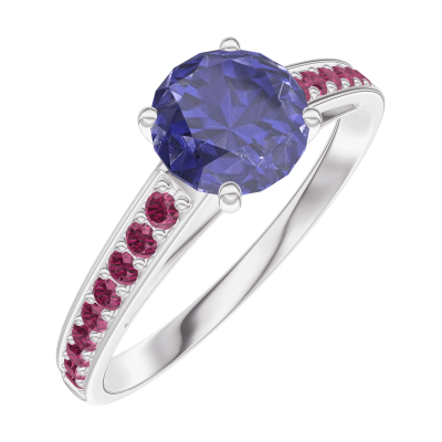 « L'ATELIER » NR 166011Pierścionek Białe złoto 750 - Niebieski szafir okrągły 0.7 karat - Oprawa Rubin 4.9