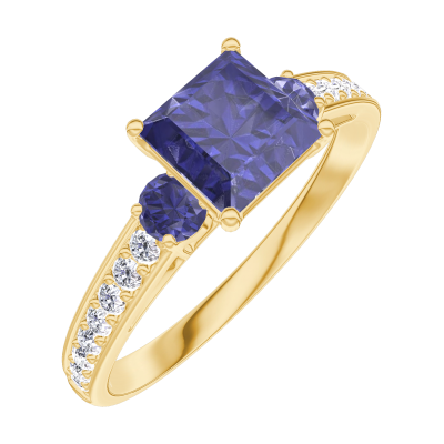 « L'ATELIER » NR 166165Pierścionek Żółte złoto 750 - Niebieski szafir „Księżniczka” 0.7 karat - Kamienie boczne Niebieski szafir - Oprawa Diament