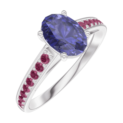 « L'ATELIER » NR 166312Pierścionek Białe złoto 375 - Niebieski szafir Owal 0.7 karat - Oprawa Rubin