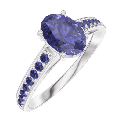 « L'ATELIER » NR 166316Pierścionek Białe złoto 375 - Niebieski szafir Owal 0.7 karat - Oprawa Niebieski szafir