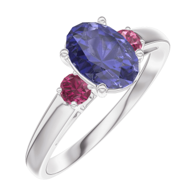 « L'ATELIER » Nº166344Pierścionek Białe złoto 375 - Niebieski szafir Owal 0.7 karat - Kamienie boczne Rubin
