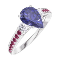 « L'ATELIER » NR 166431Pierścionek Białe złoto 750 - Niebieski szafir Gruszka 0.7 karat - Kamienie boczne Diament - Oprawa Rubin