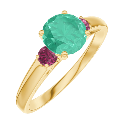 « L'ATELIER » NR 166642Pierścionek Żółte złoto 375 - Szmaragd okrągły 0.7 karat - Kamienie boczne Rubin 4.9