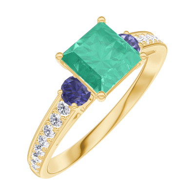 « L'ATELIER » Nº166766Pierścionek Żółte złoto 375 - Szmaragd „Księżniczka” 0.7 karat - Kamienie boczne Niebieski szafir - Oprawa Diament